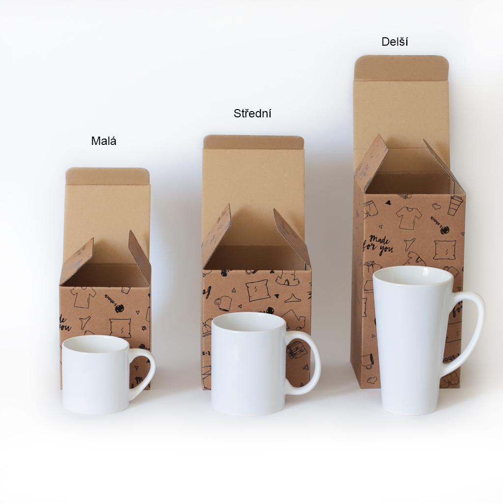 Dárková kartonová krabička vhodná jako stylové balení na menší hrnky jako malý hrnek, plecháček, keramikáček nebo hrnek lungo s potiskem, které chcete věnovat jako dárek. Krabička je vyrobena z pevného kartonu. Jednoduché a originální dárkové balení. Zasíláme v poštovní krabici, ze které krabičku s hrnkem můžete rovnou darovat.